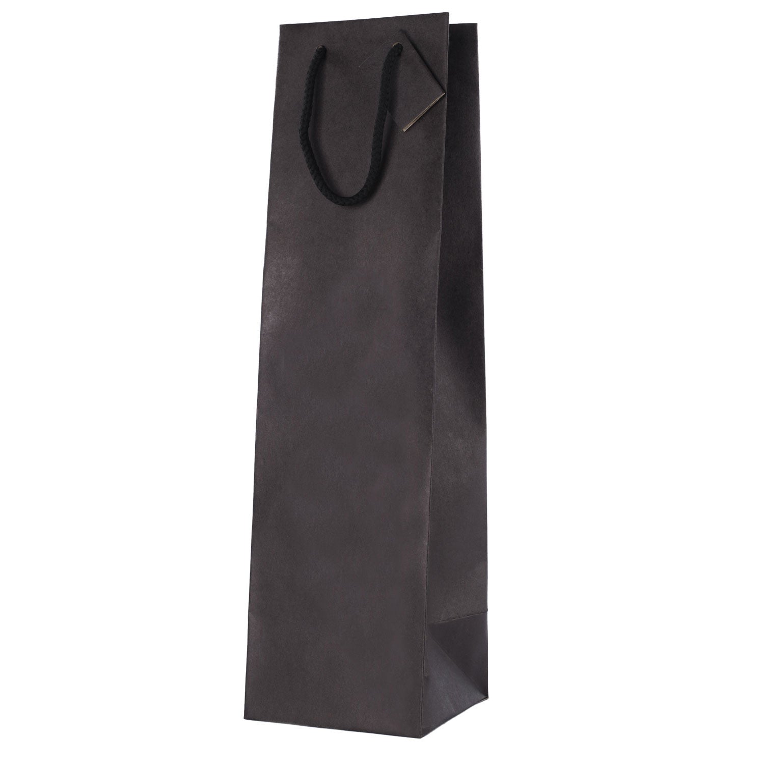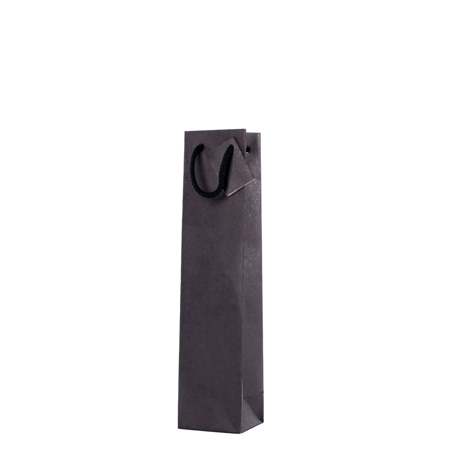 Shopper portabottiglie nere, particolarmente eleganti e apprezzate nel settore dell'enogastronomia. Realizzate con carta kraft di alta qualità, sono dotate di manici in cotone con tag incorporato, soffietto laterale e cartoncino rigido sul fondo che garantisce durabilità e facilità di trasporto. Sono disponibili in varie misure per contenere diverse tipologie di bottiglie, dai formati più piccoli fino alla magnum di champagne.